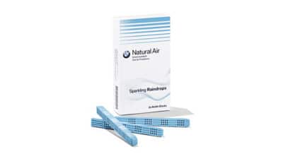 Einen harmonischen Kontrast bilden Citrus, Maiglöckchen und Moschuskomplexe in der Duftnote Sparkling Raindrops. Sie verleihen dem Fahrzeuginnenraum eine strahlende Frische. Das BMW Natural Air Refill-Kit beinhaltet drei Sticks.