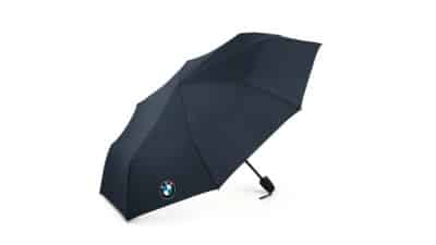 Sicher durch das nasse Wetter mit dem BMW Logoschirm. Der dunkelblaue Logo Taschenschirm verfügt über eine Öffnungs- und Schließautomatik, Logos auf dem Schirmdach und -griff und wird mit Schirmhülle ausgeliefert.
