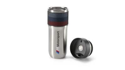 Der Thermobecher für echte BMW-Fans. Er besteht aus Edelstahl, fasst 450 ml und verfügt über einen Silikonring mit M Streifen und Wabenstruktur sowie einem BMW Logo im Deckel. Dank des BMW M Motorsport Thermobechers werden Ihre Getränke das ganze Jahr über im edlem Design warm gehalten.