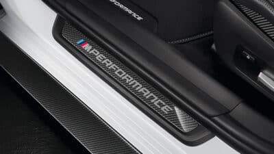 Für einen besonders edlen Einstieg: Die M Performance Einstiegsleisten aus hochwertigem Carbon sind der sportlich-individuelle Blickfang bei offener Fahrzeugtür. Sie sind passgenau auf die Geometrie und die Optik des Fahrzeugs abgestimmt. Wie alle M Performance Komponenten wurden die Einstiegsleisten nach strengen BMW Qualitätskriterien getestet. Mit M Performance Schriftzug.
