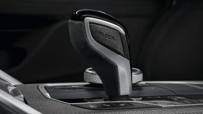 Gangwahlschalter neu interpretiert: Die ergonomische Form der Griffrückenschalen und ihre besondere Materialität sorgen für ein dynamisch-sportliches Fahrerlebnis. Der M Performance Wählhebel wird in zwei Varianten angeboten: mit Griffrückenschalen aus offenporigem 1K Carbongewebe oder aus Alcantara. In beiden Varianten wurde als besonderes Highlight das M Badge in Metallic auf der Oberseite angebracht.