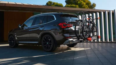 Der perfekte Begleiter für Urlaubsreisen oder Kurztrips: Der BMW Fahrradheckträger Pro 2.0 wurde für den sicheren Transport von zwei Fahrrädern/E-Bikes auf einem Kugelkopf von BMW Anhängerkupplungen entwickelt. Durch die Abklappfunktion ist das Reisegepäck im Kofferraum jederzeit komfortabel zugänglich. Das leichte, aber stabile Trägersystem mit seiner Stahl-Aluminium-Konstruktion ist mit max. 60 kg belastbar und bietet Rädern mit bis zu 130 cm Achsabstand Platz. Es erfüllt höchste Sicherheitsanforderungen und überzeugt mit besonders einfacher Handhabung.